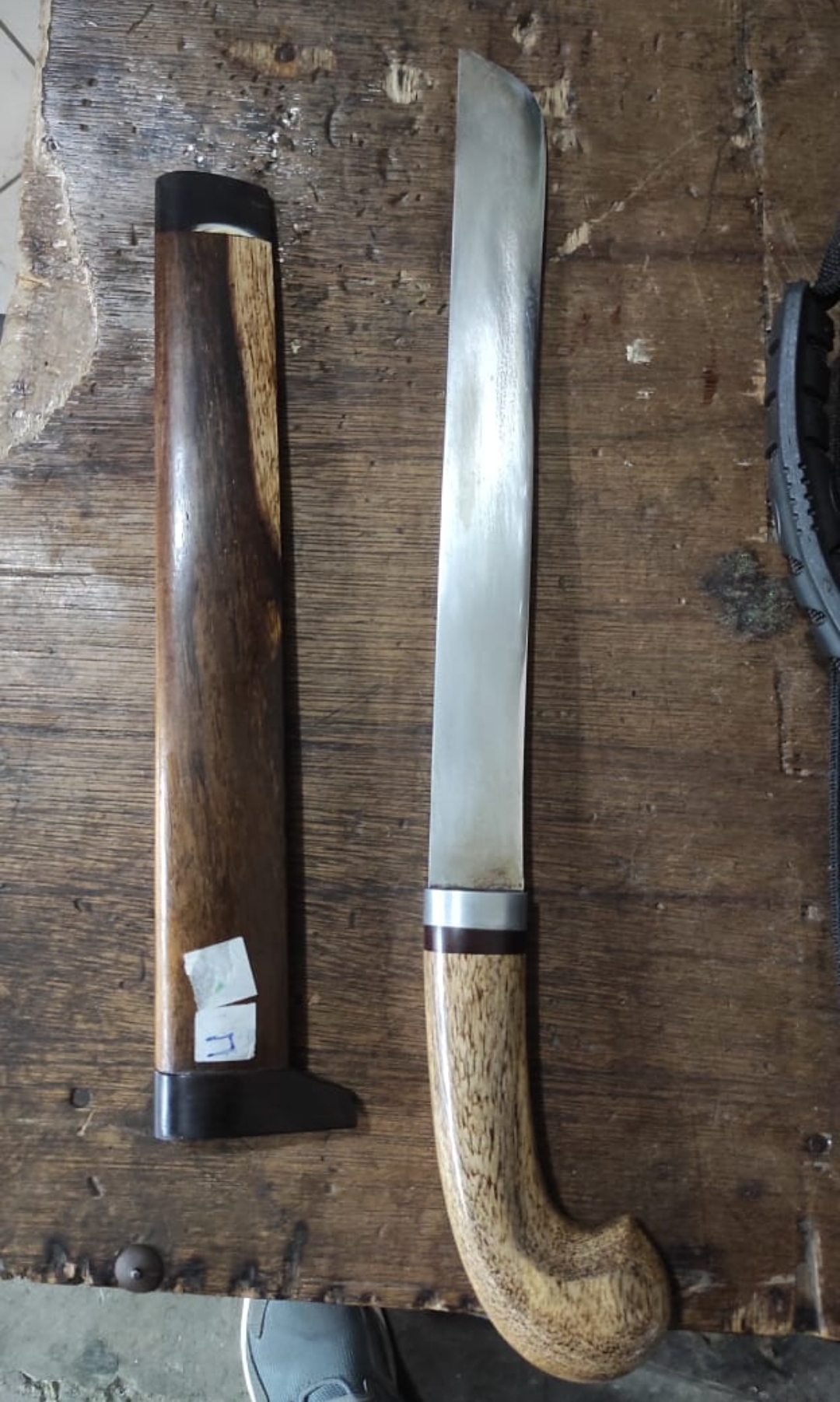 “Pisaunya khusus terbuat dari Baja dan disepuh hingga diasah pakai Intan. Meski tidak diasah berbulan-bulan, pisau tidak mengalami tumpul. Cara mengasahnya mudah, cukup digosokkan ke kulit yang sudah diawetkan,” tambahnya.